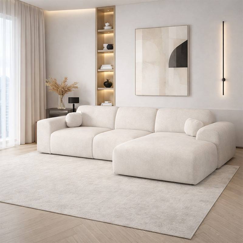 Modernaus dizaino minkštas kampas CLOUD. Švelnios kreminės spalvos audiniu. Subtilus ir minimalistinis dizainas, švelnūs apvalūs kampai formuoja debesies kontūrą. Kampas pasižymi ypatingu minkštumu ir komfortu. Papuoš Jūsų namus ir taps jų akcentu, ant kurio galėsite kokybiškai leisti laiką su šeima ir draugais.