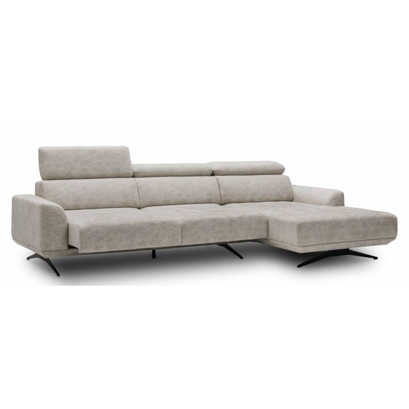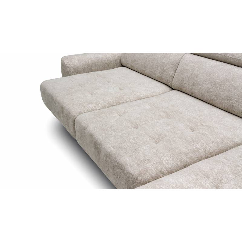 Minkštas kampas ERIS – stilingas ir funkcionalus kampas be miegamos funkcijos, su rankiniu gylio reguliavimu ir reguliuojamais galvos atlošais.
