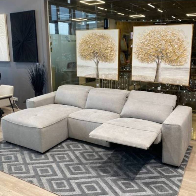 Integruotas elektrinis reglaineris leidžia reguliuoti tiek galvos, tiek kojų atramas – viskas valdoma lengvai, o mygtukai paslėpti vidinėje pusėje, todėl kampo dizainas išlieka švarus ir estetiškas. Be pagrindinio elektrinio mechanizmo, du papildomi galvos atlošai reguliuojami rankiniu būdu, suteikiant galimybę kiekvienam šeimos nariui susikurti individualiai patogiausią poziciją.