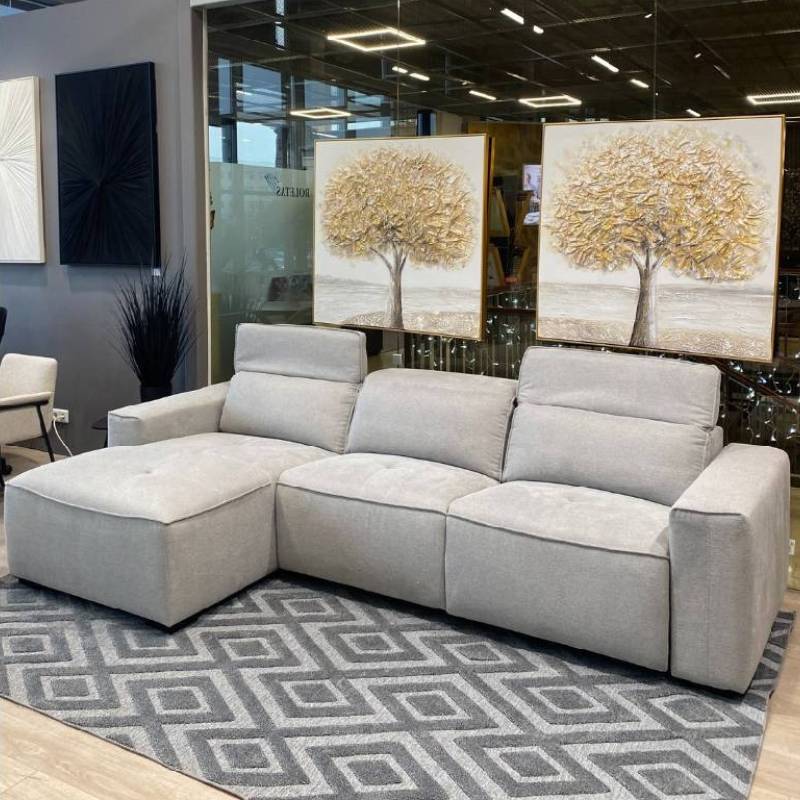 ESTEBAN – tai išskirtinio komforto ir šiuolaikinio dizaino minkštas kampas, puikiai tinkantis tiek kasdieniam poilsiui, tiek ilgiems kino vakarams. Švelniai pilkos spalvos audinys suteikia baldui universalumo, o minkšta ir ergonomiškai suformuota sėdimoji dalis garantuoja maksimalų patogumą.