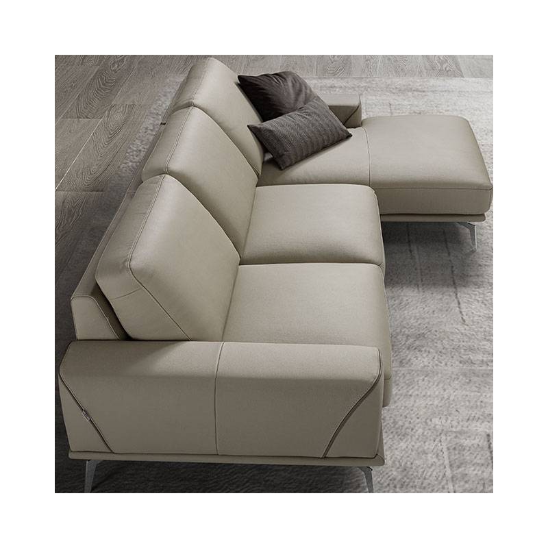 Minkštas kampas KAYLEE – modernus, tvirtas ir labai patogus. Su kišeninėmis spyruoklėmis, reguliuojamais atlošais ir 12 cm metalinėmis kojelėmis.