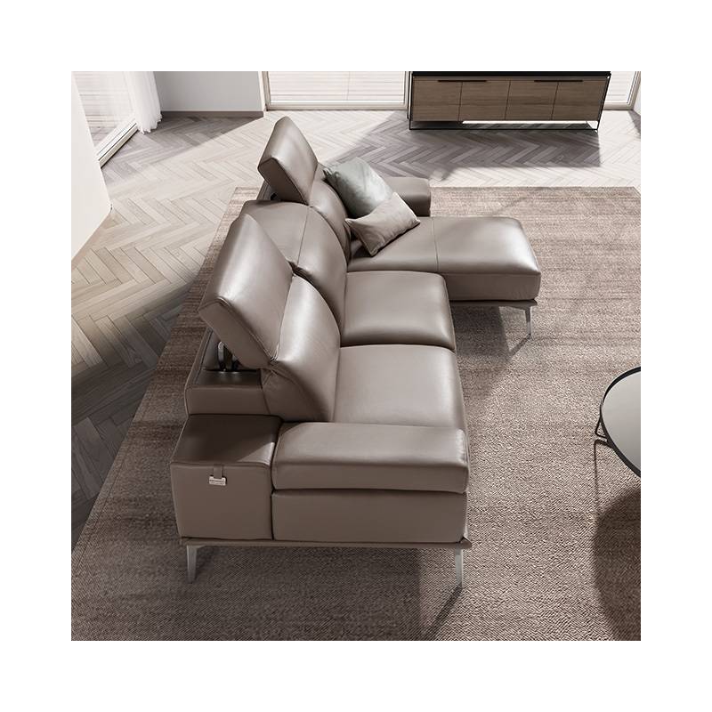 Itališkas minkštas kampas iš natūralios odos su slankiojančiomis sėdynėmis, reguliuojamais galvos atlošais ir plieninėmis kojomis. Galimos įvairios komplektacijos.