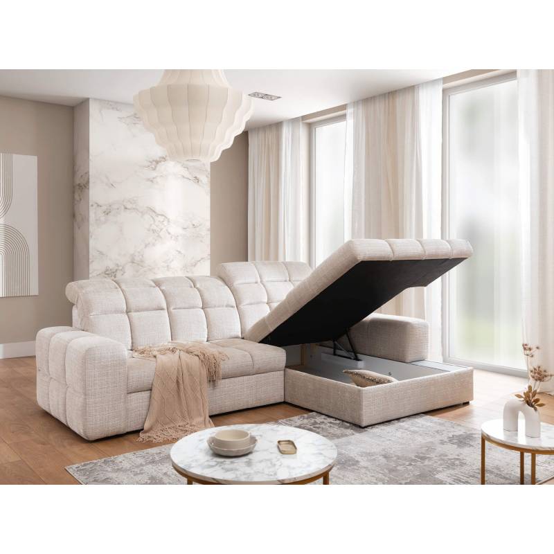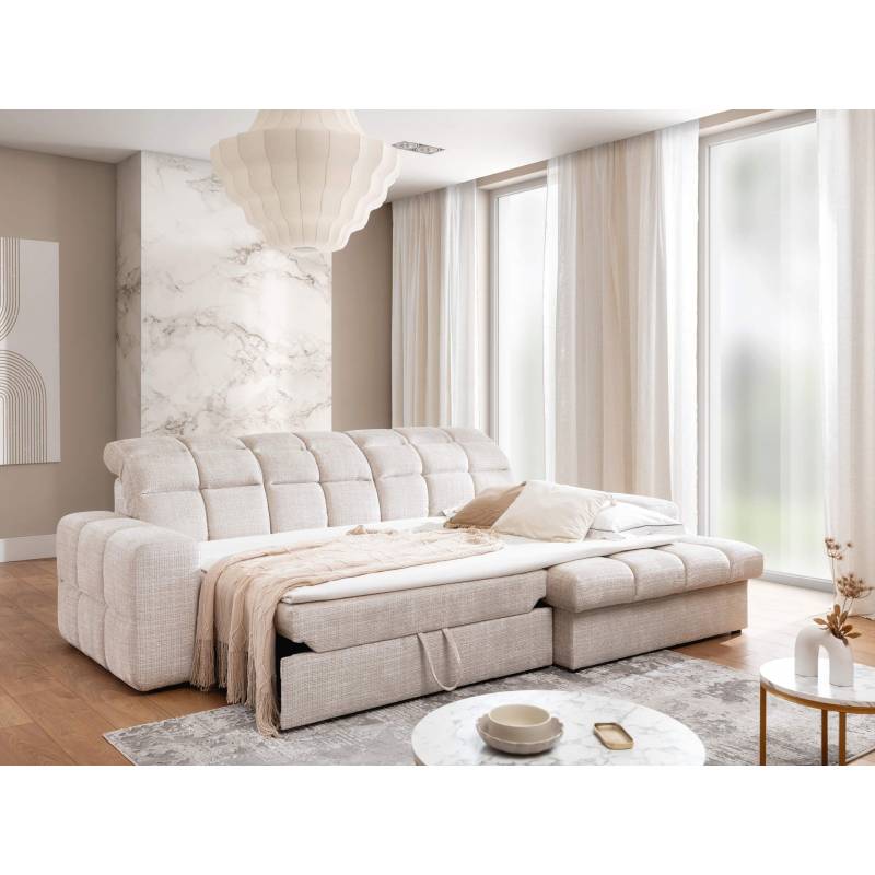 Šis kampas yra elegantiškas ir patogi vieta miegoti. Dėl miegojimo funkcijos ir patalynės dėžės jį nesunkiai paversite patogia lova svečiams, o tai ypač praktiška netikėtų apsilankymų atveju arba kai reikia papildomos nakvynės vietos. Papildomas privalumas – patogios sulankstomos galvos atramos, kurios leidžia individualiai reguliuoti atlošo aukštį ir kampą, taip suteikiant dar didesnį komfortą ilsintis ar skaitant mėgstamą knygą.