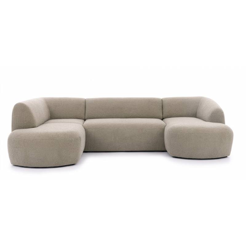 RESO minkštas kampas U formos – tai erdvus ir modernus baldas, išsiskiriantis švelniomis, apvaliomis formomis ir išskirtiniu komfortu. Dėl savo dydžio ir formos jis puikiai tinka didesnėms svetainėms, kur tampa pagrindiniu poilsio zonos akcentu.