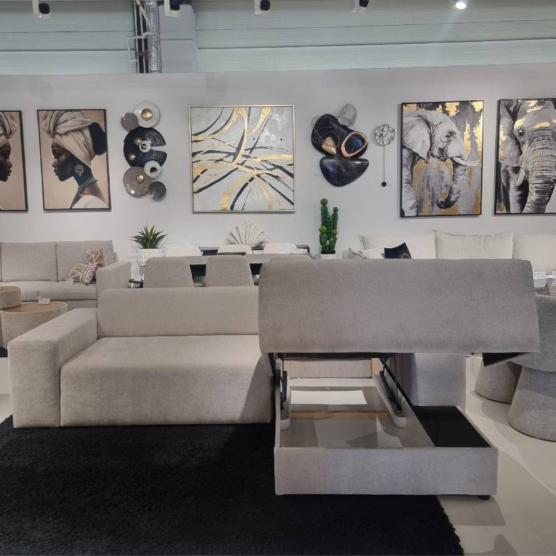 Minkštas ir patogus "L" formos minkštas kampas, galėsite atsipalaiduoti ir mėgautis patogiu poilsiu. Minkštas kampas taip pat gali būti išskleidžiamas ir suteikti jums dar daugiau komforto.