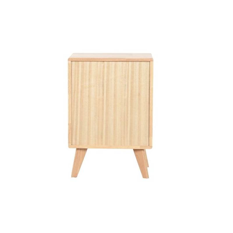 Naktinė spintelė HEREDI iš hevea medienos su metaliniais elementais - natūralus, šiltas baldas jūsų miegamajam.