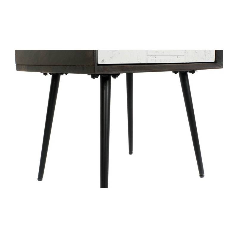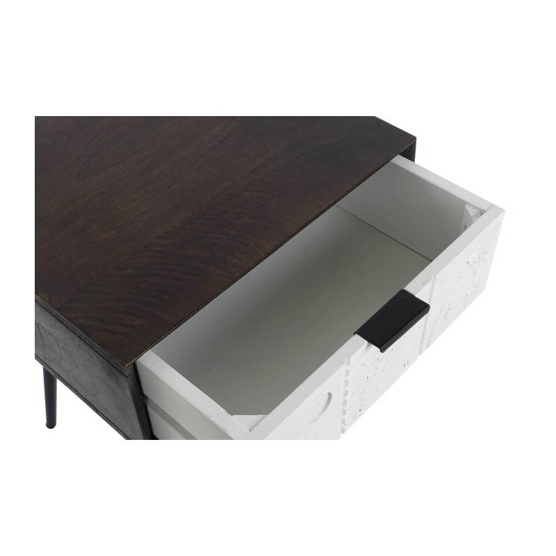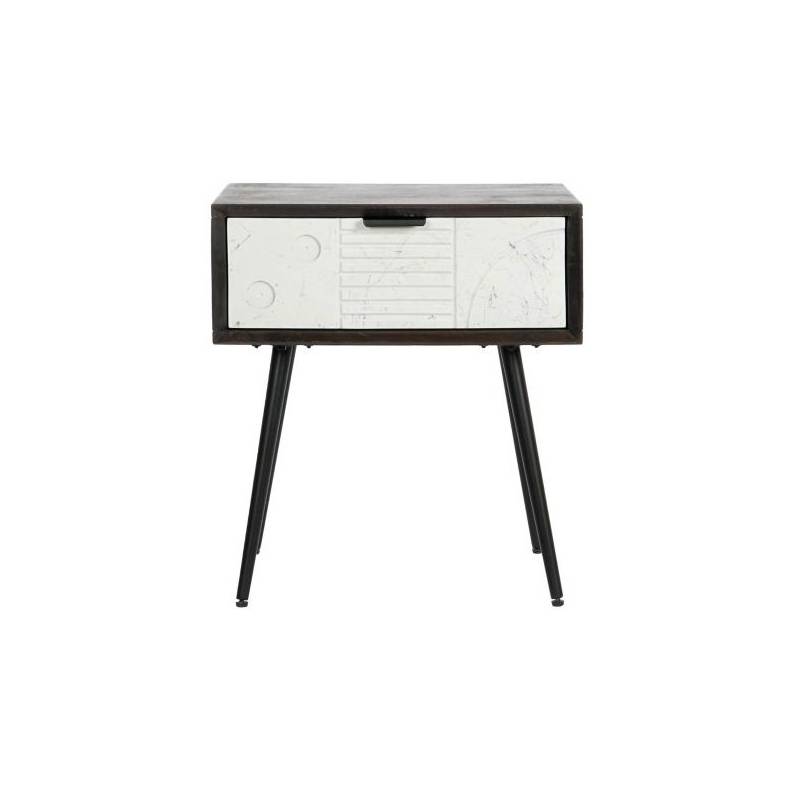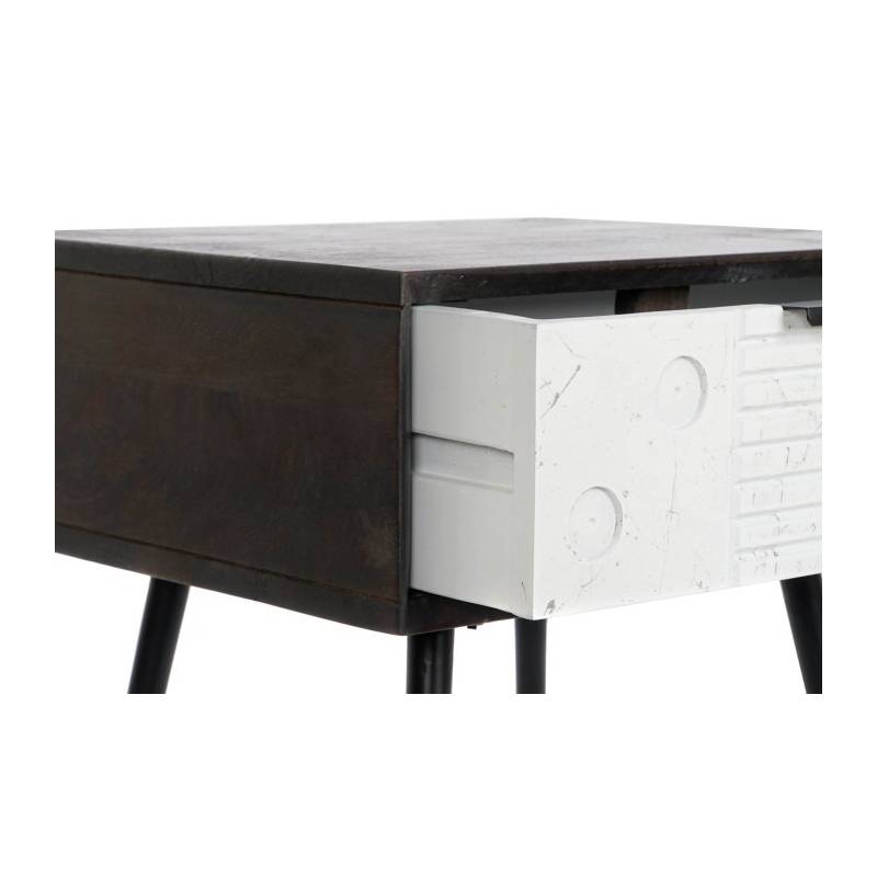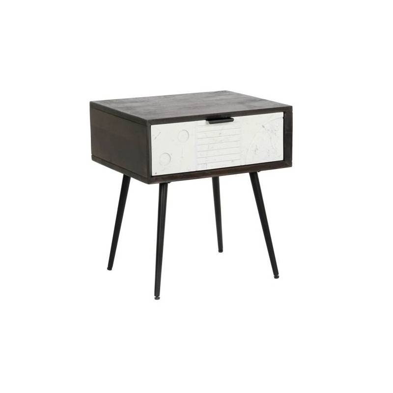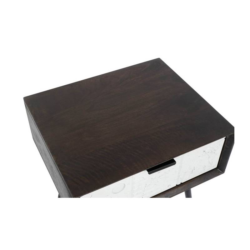 Naktinis staliukas VESTO – mango mediena ir metalo derinys, tamsus atspalvis, modernus dizainas, 45×38×50 cm – dizaino akcentas miegamajam.
