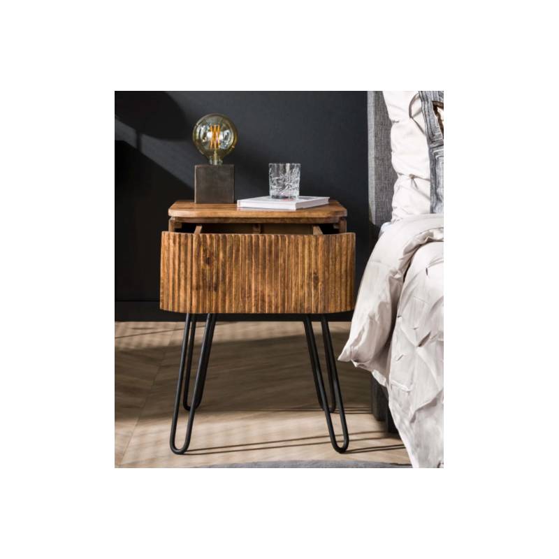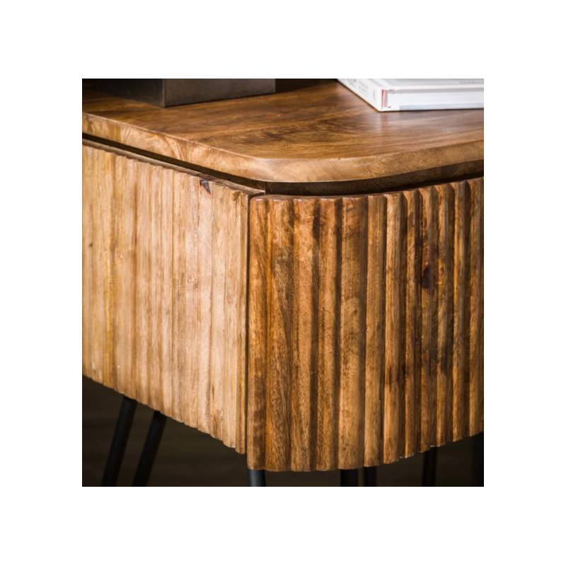 WAVE naktinis staliukas pagamintas iš tvirtos mango medienos ir išsiskiria subtilia smėlio spalvos apdaila bei išraiškingu banguotu fasadu. Šis dizaino akcentas suteikia baldui gyvumo ir šiuolaikiško charakterio, puikiai papildančio įvairius interjerus.