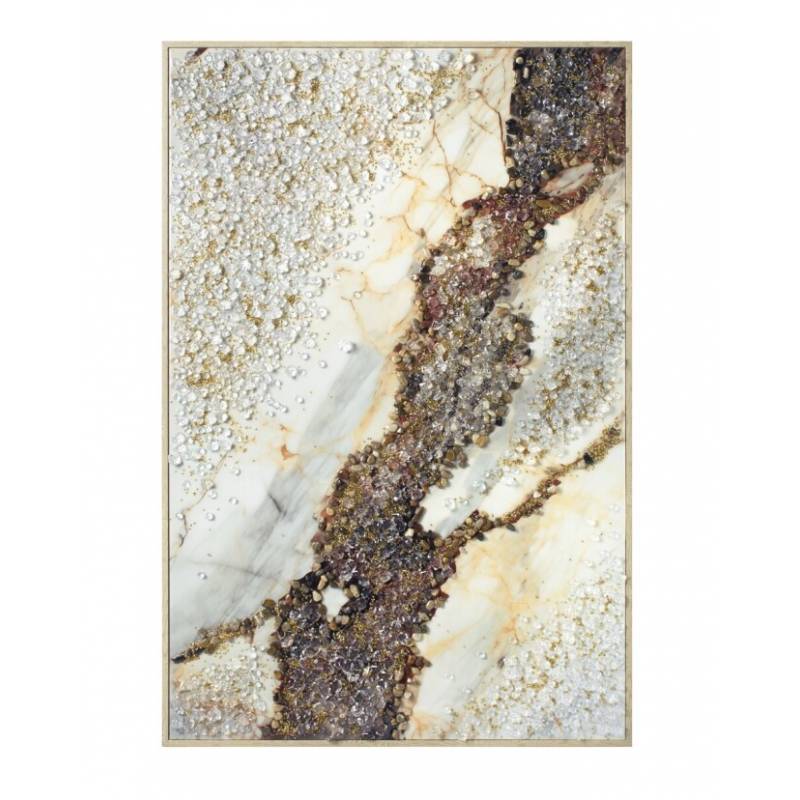 Reljefinis paveikslas su marmuro ir akmenukų tekstūra, 80 x 120 cm, su baltu rėmu.