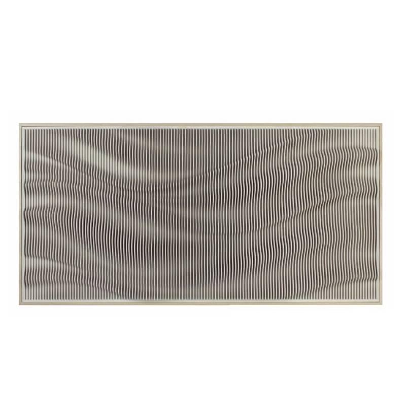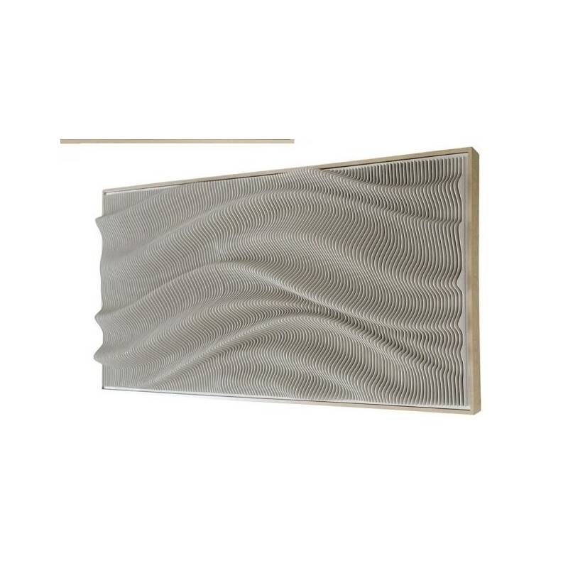 Reljefinis sienų dekoras iš medinių juostelių, formuojančių bangų raštą, 160 × 80 cm.