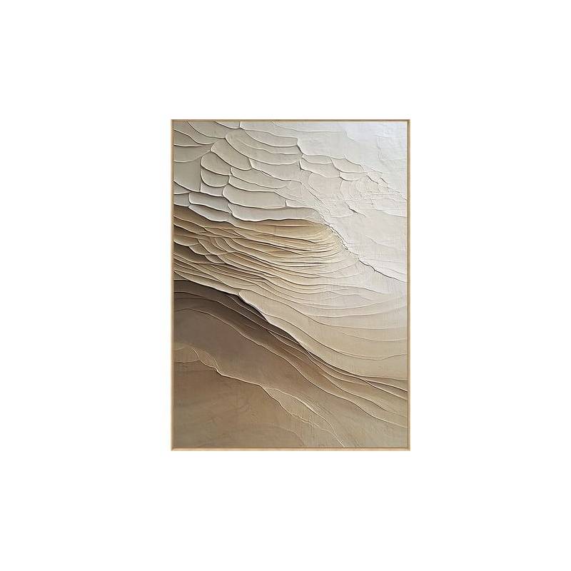 Šis paveikslas užpildo erdvę tiek moderniame, tiek minimalistiniame ar net eklektiškame interjere, suteikdamas jai subtilaus charakterio ir tekstūrinės vertės. Jo neutralūs tonai leidžia lengvai derinti su baldais ir namų dekoru, o faktūrų žaismė įkvepia kūrybiškumą ir išbaigtumo pojūtį.