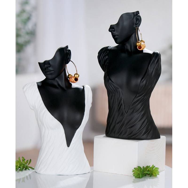Stilinga moters formos dekoracija, derinanti juodą ir baltą spalvas bei suteikianti interjerui elegancijos.