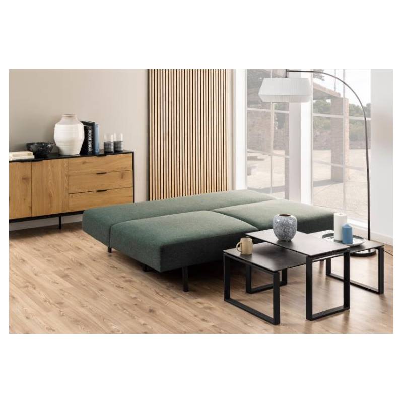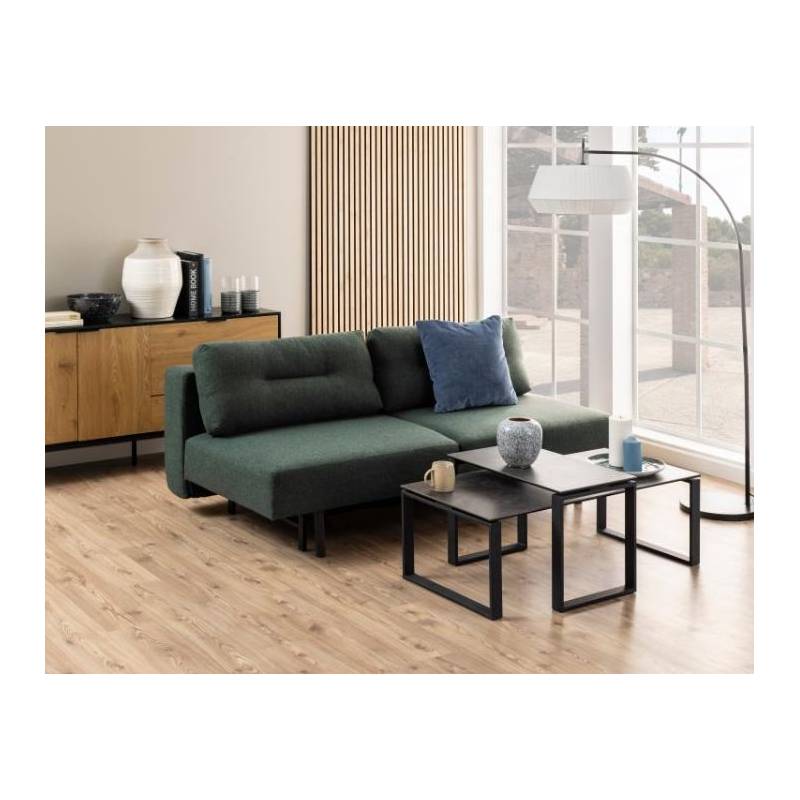 Stilinga žalia sofa-lova su miego funkcija, užtikrinanti komfortą, funkcionalumą ir modernų dizainą.