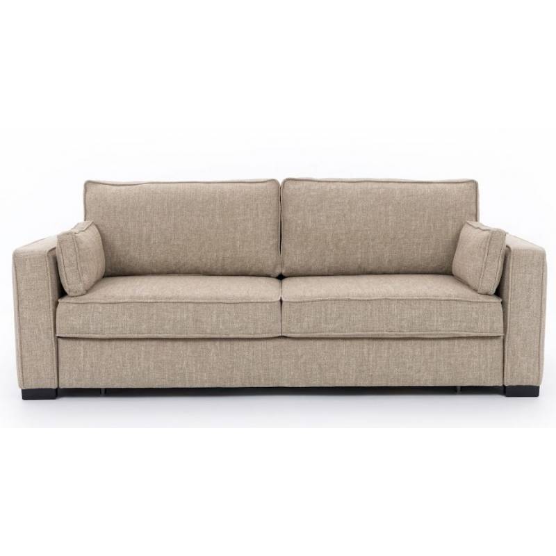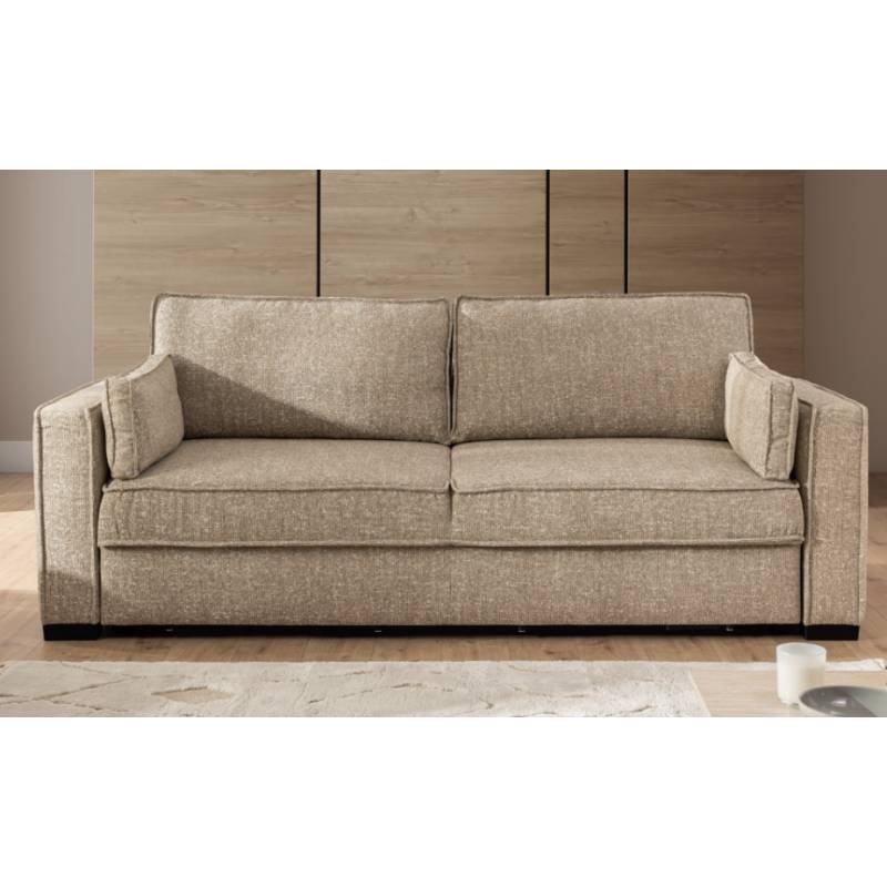 Stilinga sofa-lova su miegama funkcija, rusvos spalvos, patogi kasdieniam naudojimui su galimybe rinktis audinius.