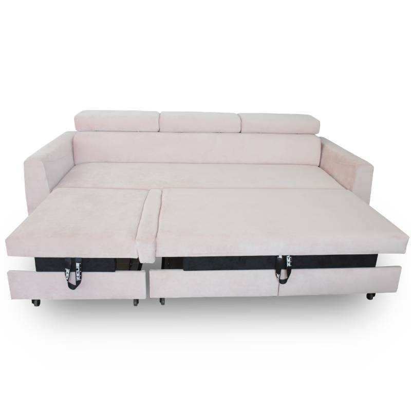 Moderni sofa-lova su miegama funkcija ir patalynės dėže, suteikianti komfortą ir funkcionalumą kasdien.