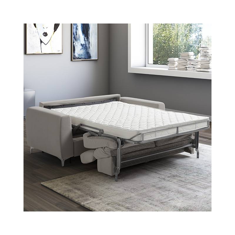 TOURQUOIS – tai moderni ir išskirtinių, apvalių formų sofa-lova, sukurta ieškantiems komforto ir stilingo dizaino viename balde. Integruotas čiužinys patogiai išverčiamas į pilnavertę lovą, todėl ši sofa puikiai tinka tiek kasdieniam naudojimui, tiek svečių apgyvendinimui. Švelnios linijos ir elegantiška konstrukcija kuria jaukią, prabangiai atrodančią erdvę.