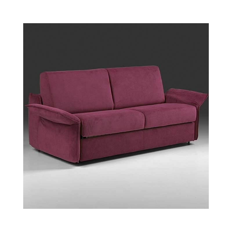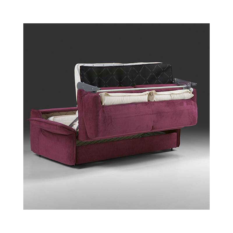 Stilinga rausva sofa-lova su patogiu miego mechanizmu ir pasirinkimo galimybe rinktis skirtingus audinius bei spalvas – praktiška ir elegantiška.