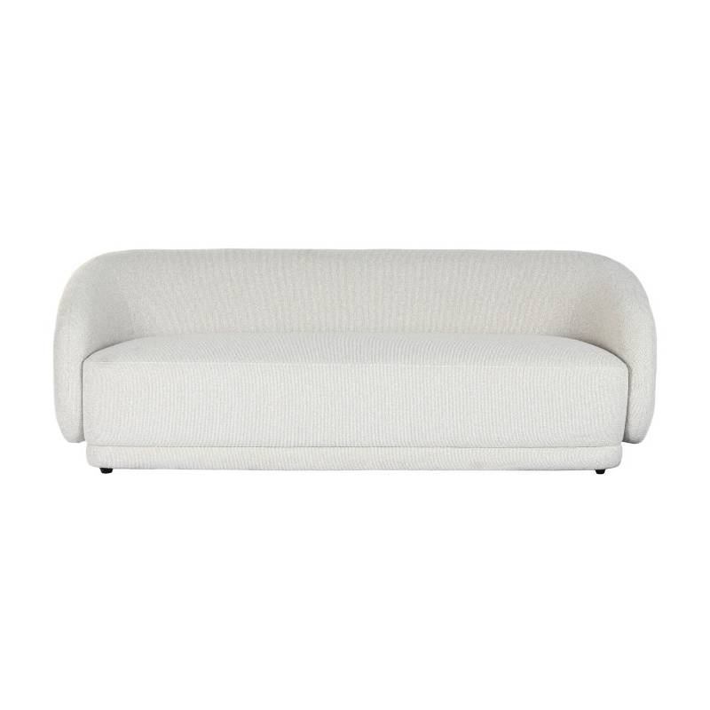 BISCAY sofa-lova – grakštus skandinaviškas dizainas, baltas boucle audinys ir natūralaus medžio tekstūra suteigia šiuolaikiško šarmo jūsų svetainei.