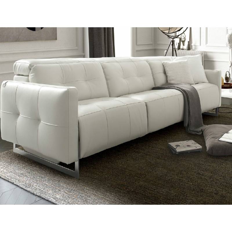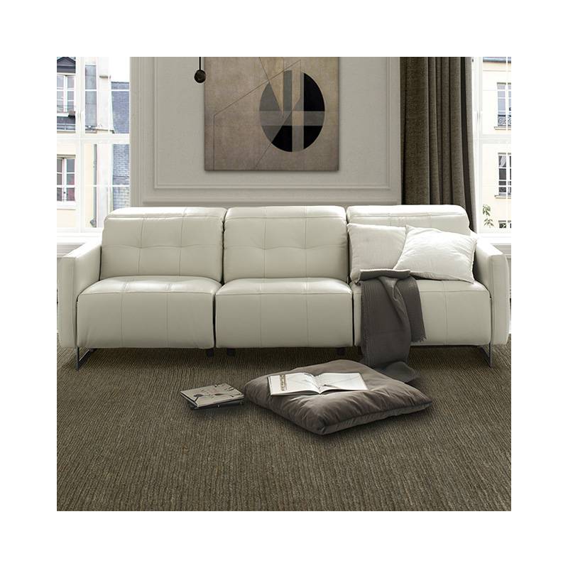 Trivietė sofa DUCA su natūralios odos apdaila ir dviem elektriniais reglaineriais. Komfortas, funkcionalumas ir elegantiškas dizainas jūsų namams.