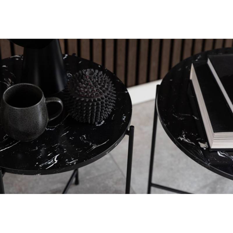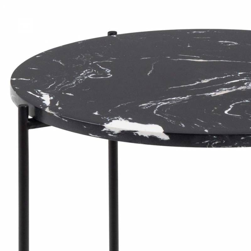 Šoninis staliukas su juodu marmuru ir juodu plieniniu rėmu – solidus, modernus bei praktiškas interjero akcentas.