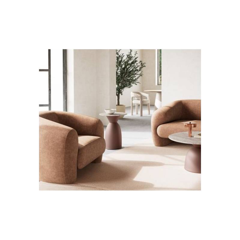 Bronzinio atspalvio metalinis pagrindas suteikia baldui stabilumo ir subtilios prabangos. Tai modernus ir funkcionalus sprendimas, derinantis estetiką su kasdieniu patogumu.