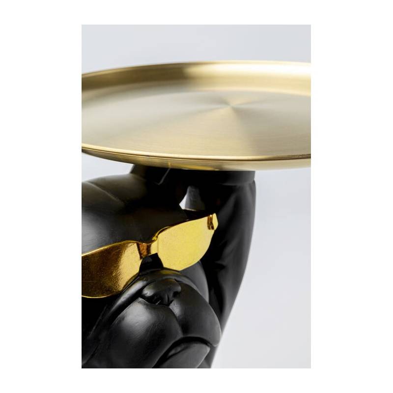 Staliukas BULLDOG – tai drąsus dizaino sprendimas, kuris iš karto patraukia dėmesį. Juodas buldogo pavidalo pagrindas su akiniais nuo saulės suteikia baldų dizainui charakterio ir humoro, o blizgus auksinis padėklo tipo stalviršis įneša prabangos bei elegancijos pojūtį. Šis staliukas sujungia meninę išraišką ir funkcionalumą – jis gali būti naudojamas kaip šoninis stalas šalia sofos, kavos puodeliui ar dekoracijoms, arba kaip stilingas akcentas prieškambaryje.