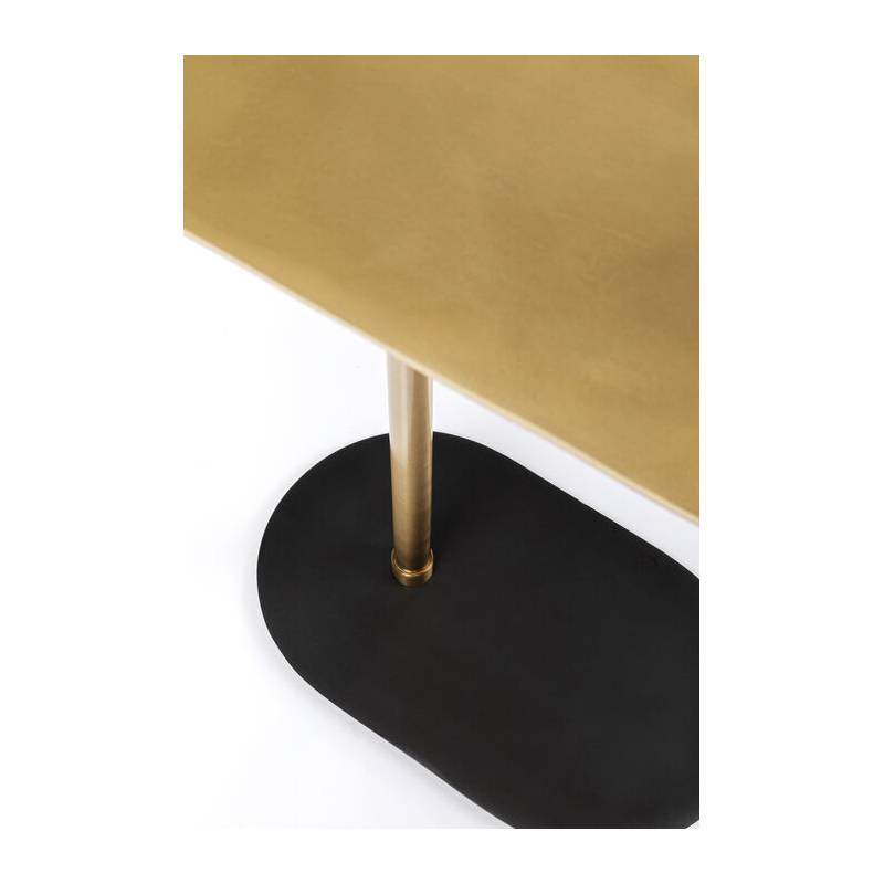 SLIDE šoninis staliukas išsiskiria išraiškingu aukso ir juodos spalvų deriniu, kuris suteikia interjerui modernumo ir prabangos. Aukso spalvos stalviršis kontrastuoja su tvirta juoda baze, kurdamas harmoningą ir stilingą vaizdą.