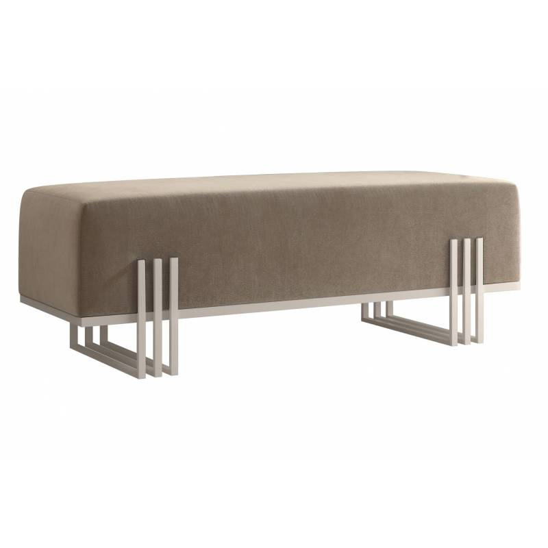 Minimalistinis suoliukas su minkšta sėdyne ir metaliniu rėmu, puikiai tinkantis prieškambariui, miegamajam ar garderobui.