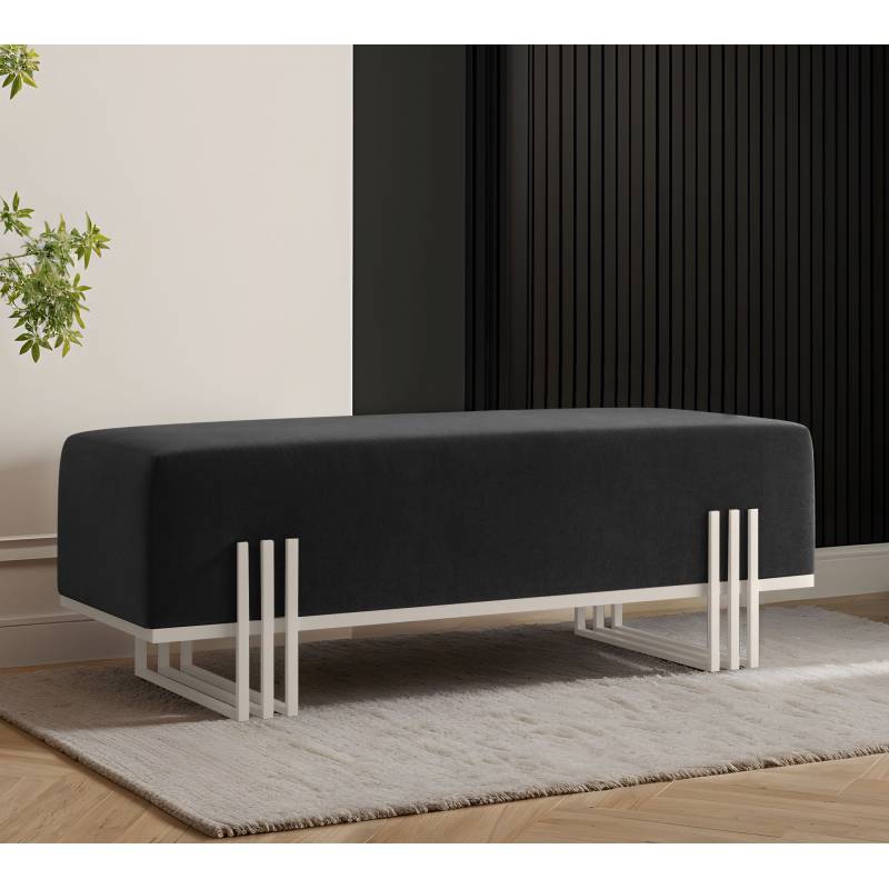 Tvirtas metalinis rėmas gali būti pasirenkamas skirtingų spalvų, todėl suoliuką lengva pritaikyti individualiam skoniui. Tai praktiškas ir estetiškas sprendimas prieškambariui, miegamajam, svetainei ar darbo erdvei.
