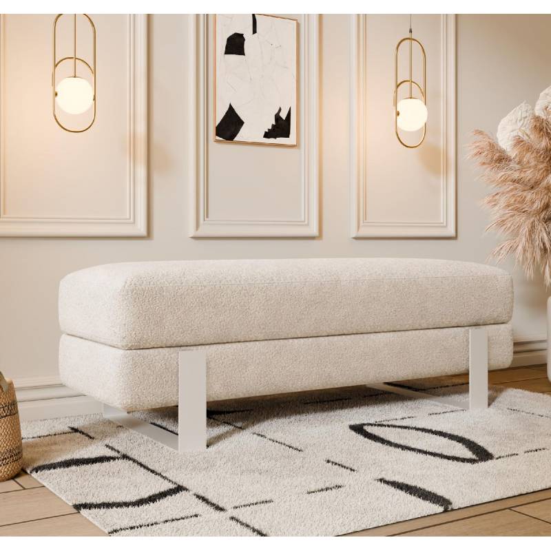 Modernus suoliukas su minkšta sėdima dalimi ir metaliniu pagrindu, puikiai tinkantis prieškambariui, miegamajam ar svetainei.