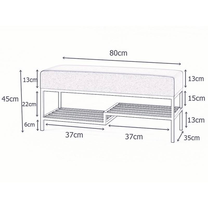 Suoliukas FABIAN tiks tiek miegamajame, tiek prieškambaryje. Didelis privalumas, kad galite rinktis tiek audinio, tiek kojų spalvas ir derinti prie bet kokio interjero. Yra dviejų lygių lentynos, į kurias galėsite susidėti batus, šlepetes ar kitus daiktus (pvz. nenaudojamus pledus).
