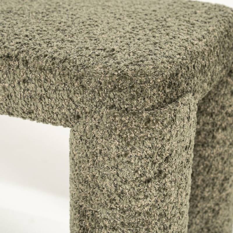 Tvirtas medinis pagrindas garantuoja stabilumą, o universali forma leidžia suoliuką naudoti tiek prie valgomojo stalo, tiek prie lovos ar prieškambaryje. Šviesiai žalias atspalvis įneša švelnumo ir gaivos į interjerą, puikiai derant prie šviesių, natūralių tonų.