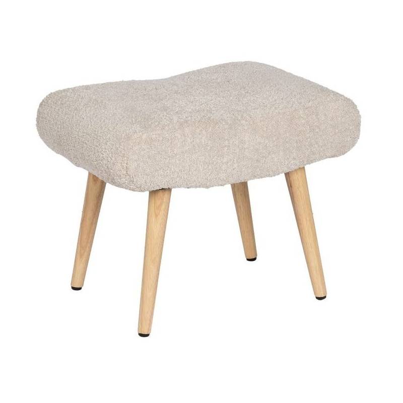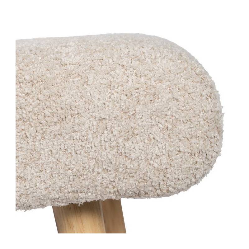 Suoliukas RIVANO su smėlio spalvos pintu audiniu ir medinėmis kojomis – natūralus bei stilingas baldas jūsų namams.