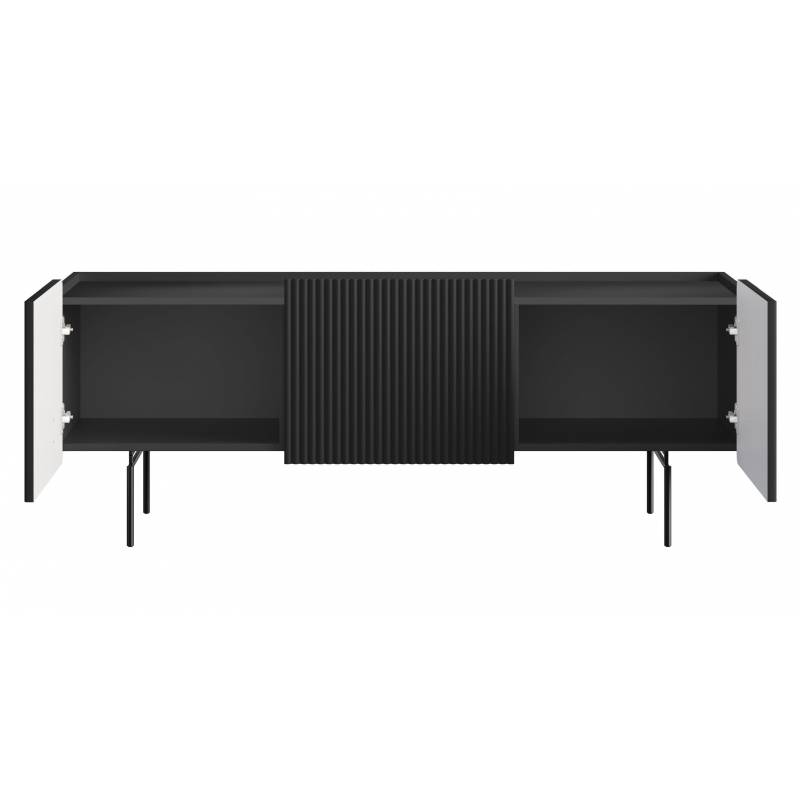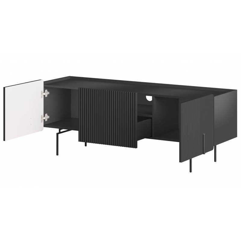 Spintelė turi dvi dureles, vieną erdvų stalčių ir atvirą nišą, kurioje patogu laikyti medijos įrangą. Viduje integruotas laidų praėjimo angos sprendimas užtikrina tvarką ir patogumą. Švelnaus uždarymo vyriai bei bėgeliai užtikrina tylų ir patikimą naudojimą.