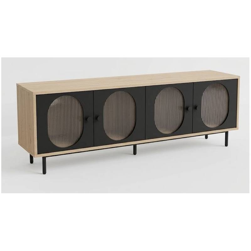 TELVI – tai TV spintelė iš „Telvi“ serijos, kuri išsiskiria savo elegantišku dizainu ir švelniomis formomis. Ovalūs, suapvalinti fasadai suteikia interjerui šilumos ir vizualinės harmonijos, o subalansuotos proporcijos leidžia baldui natūraliai įsilieti tiek į modernų, tiek į prabangų glamour ar art deco stiliaus interjerą.
