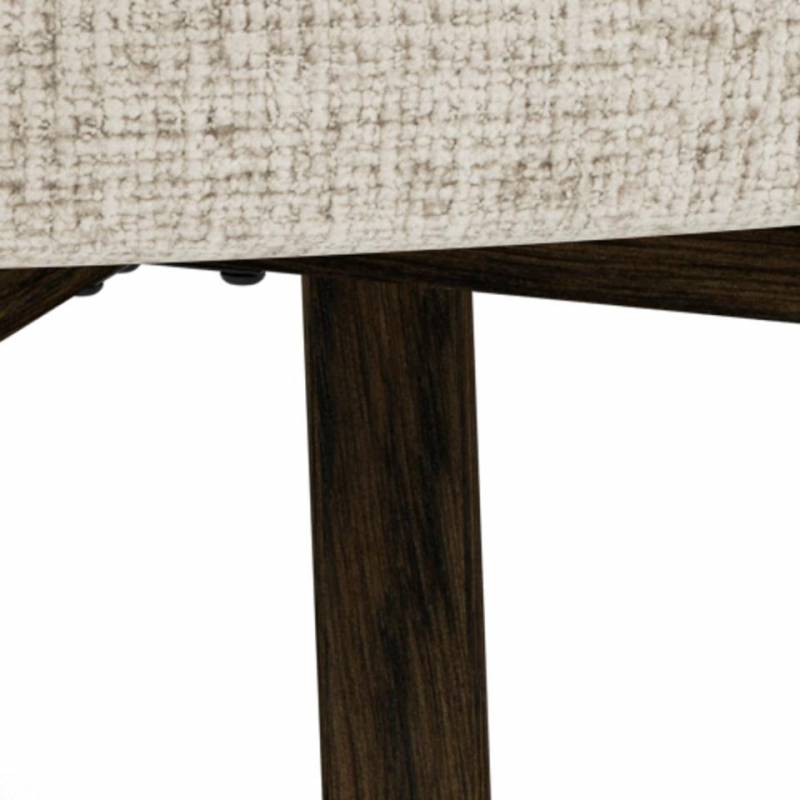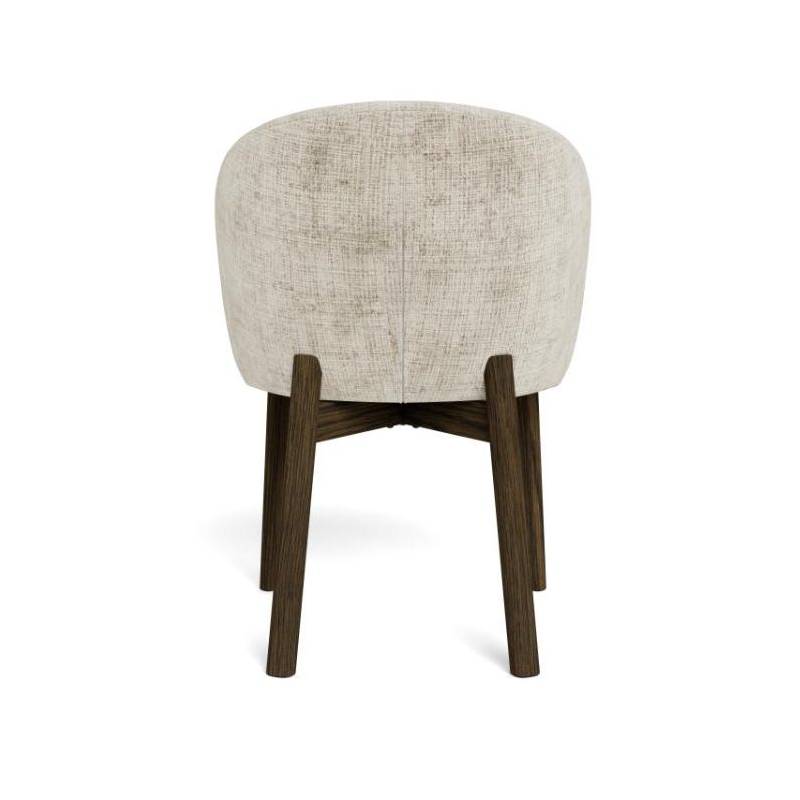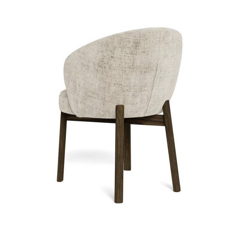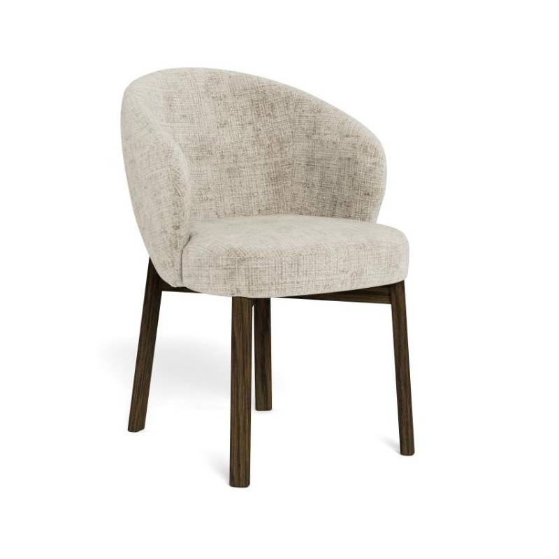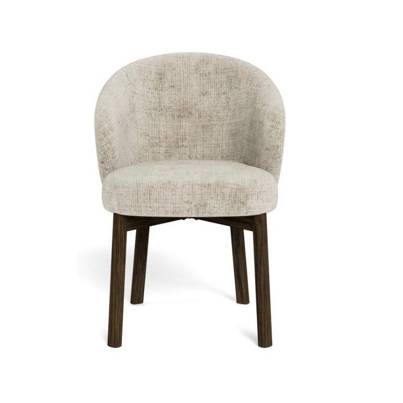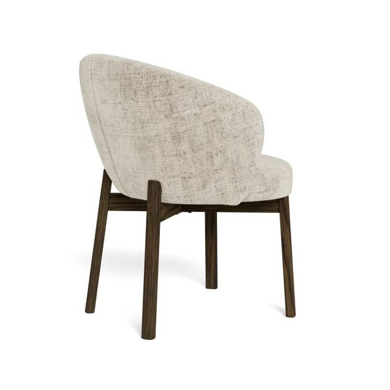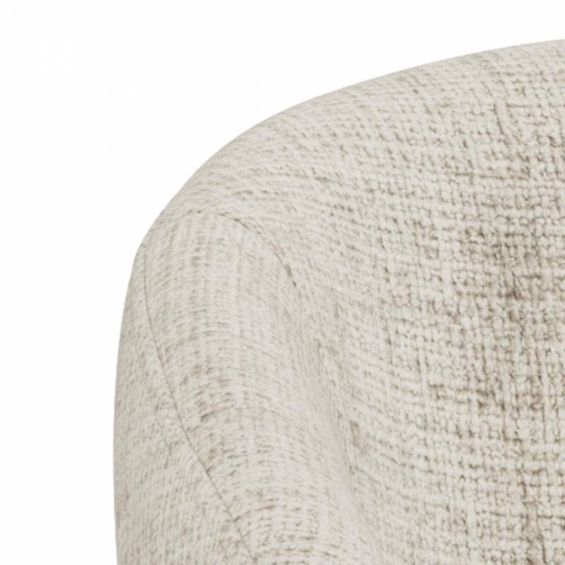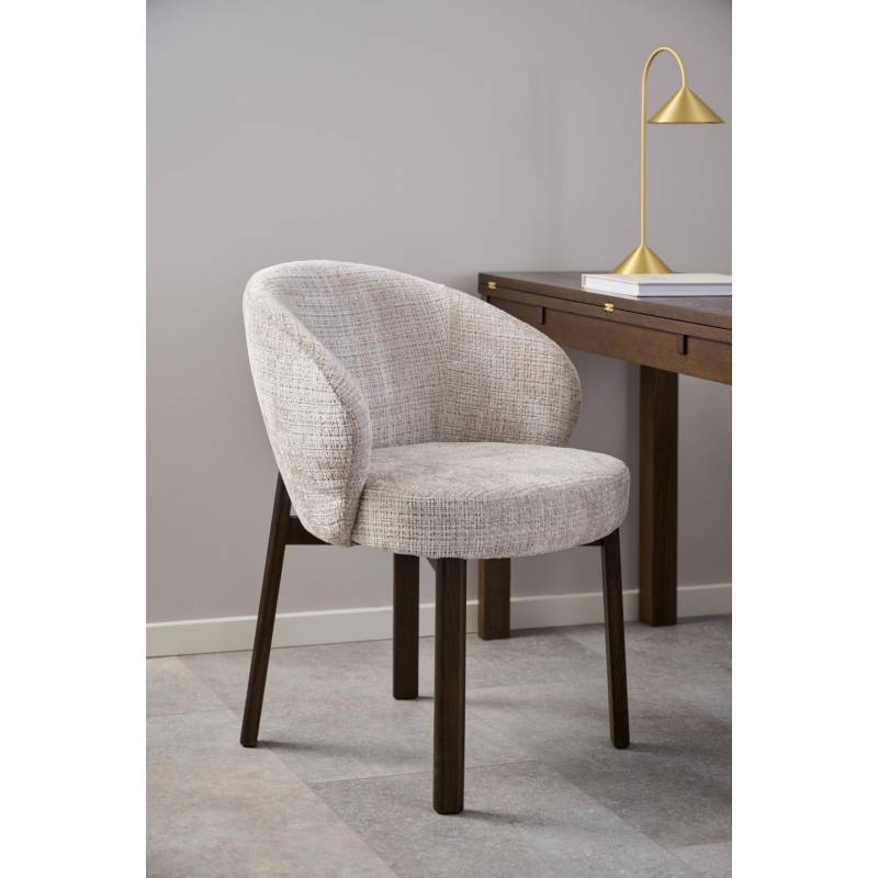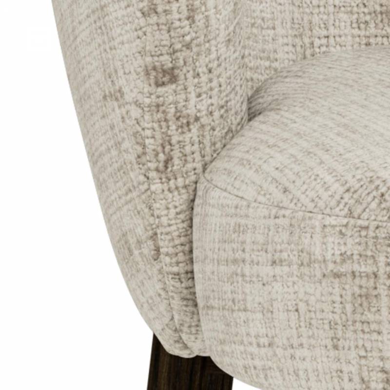 Valgomojo kėdė su porankiais pasižymi moderniu dizainu ir švelniai apvalintomis formomis, kurios suteikia interjerui jaukumo ir išbaigtumo. Smėlio spalvos audinys su subtilia tekstūra sukuria malonų paviršiaus pojūtį ir lengvai dera įvairiuose interjero stiliuose – nuo modernaus iki klasikinio.