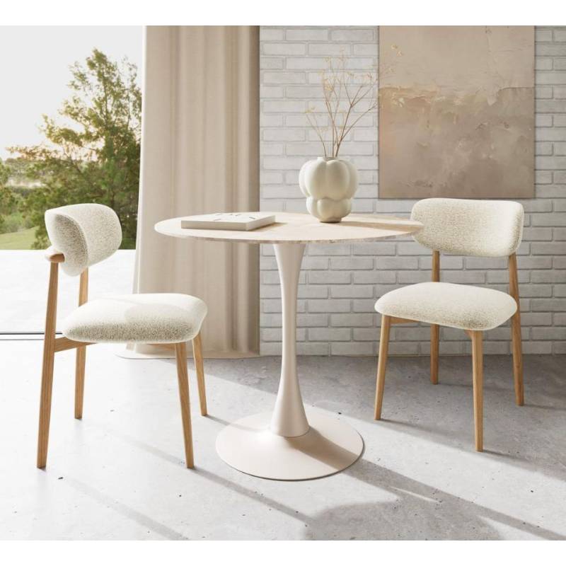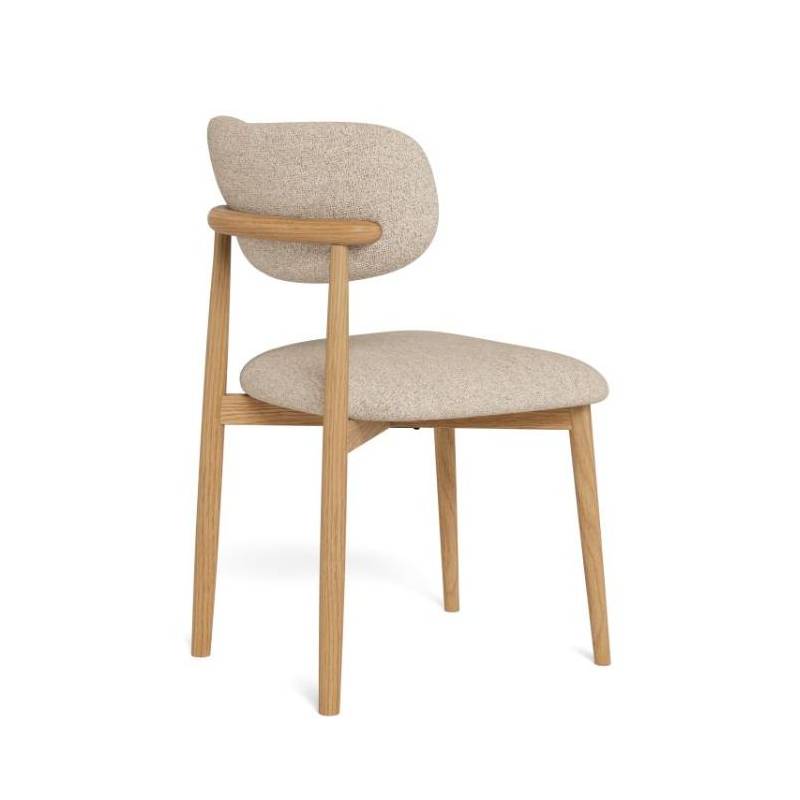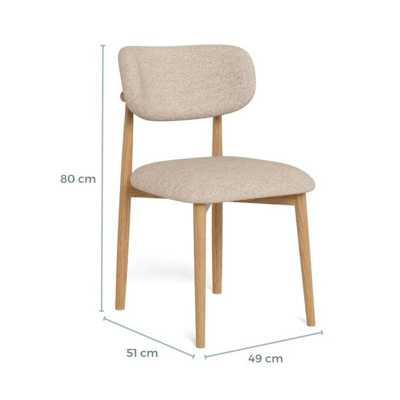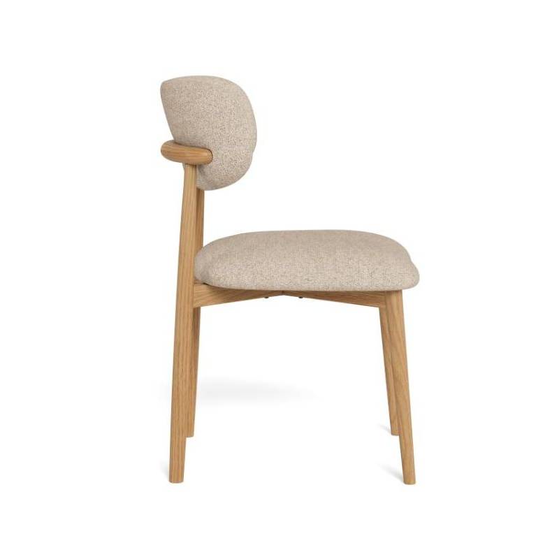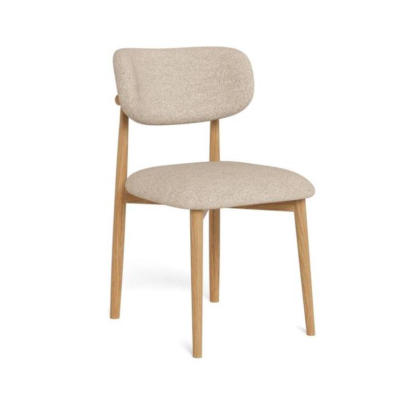 Ši valgomojo kėdė išsiskiria tvirtu, tačiau elegantišku dizainu ir organiškomis formomis, kurios kuria jaukią ir harmoningą atmosferą. Beige spalvos bouclé audinys su subtilia tekstūra suteikia švelnumo ir lengvai dera įvairiuose interjeruose.