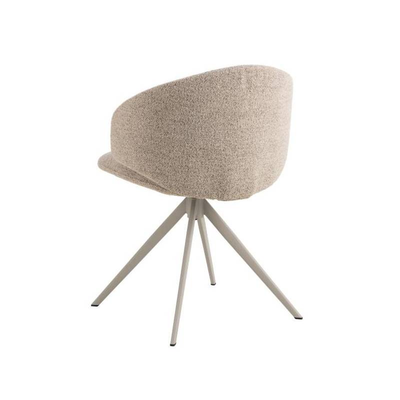 Tvirtos smėlio spalvos metalinės kojelės suteikia stabilumo, o pasukimo mechanizmas leidžia kėdę lengvai sukti – tai itin patogu tiek valgomojo, tiek darbo ar poilsio erdvėse. Kompaktiški matmenys leidžia ją lengvai priderinti prie įvairių stalų ar interjero stilių.
