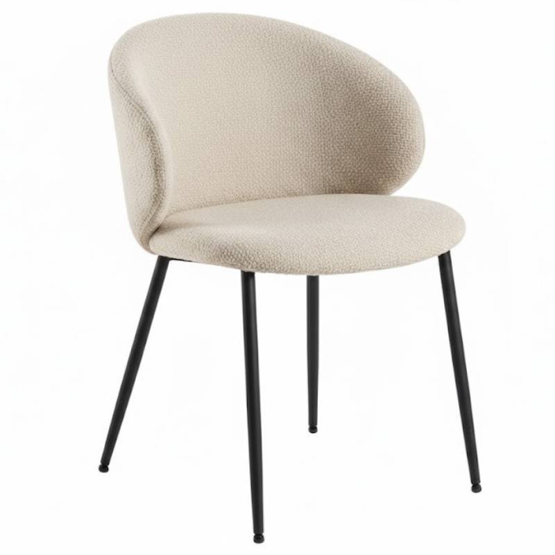Kėdė ALLORA – šviesaus audinio kėdė su juodomis milteliniu būdu dažytomis metalinėmis kojomis. 53x54x77 cm.