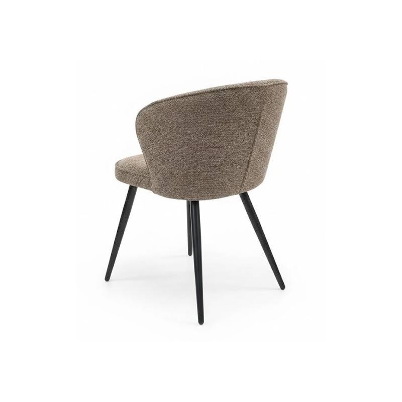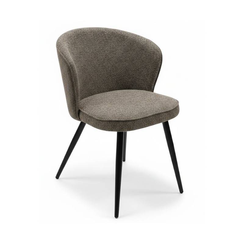 ANDRETTA – moderni kėdė, išsiskirianti lenktu nugaros atlošu ir sodrios rudos SAHARA 442 spalvos audiniu. Subtiliai išformuotas atlošas suteikia ne tik estetinį išskirtinumą, bet ir patogią atramą nugarai. Juodos kojos sukuria kontrastingą ir šiuolaikišką įvaizdį, todėl kėdė puikiai tinka tiek valgomojo, tiek darbo ar svetainės erdvei.