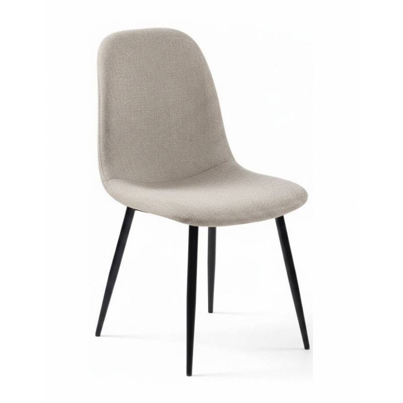 Moderni kėdė CONNY aptraukta šviesiai rusvos spalvos audiniu. Su metalinėmis juodomis, milteliniu būdu dažytomis kojelėmis. Puikus pasirinkimas valgomajam ar svetainei.