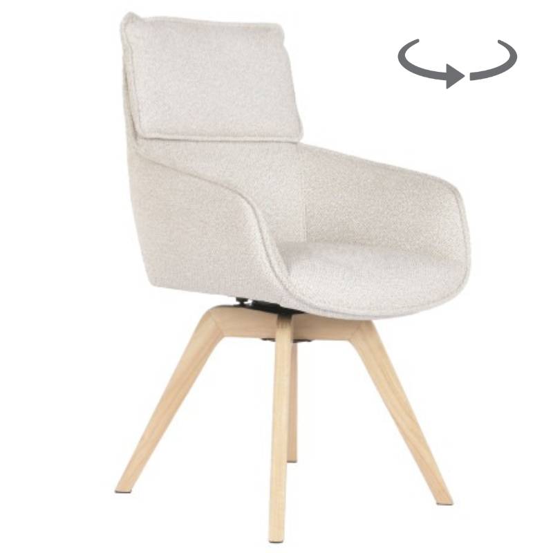 ELARA valgomojo kėdė išsiskiria švelniu, šviesiu gobeleno audiniu, kuris suteikia erdvei lengvumo ir jaukumo pojūtį. Subtilios formos ir proporcijos leidžia kėdei puikiai įsilieti tiek moderniame, tiek klasikiniame valgomojo interjere.
