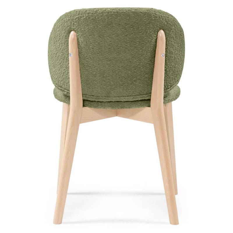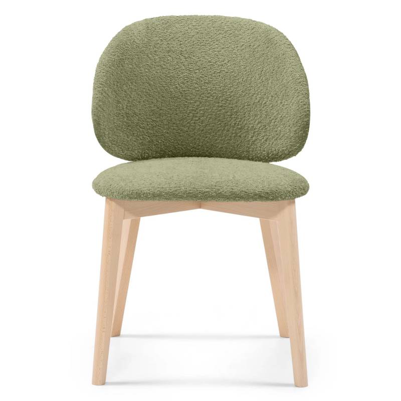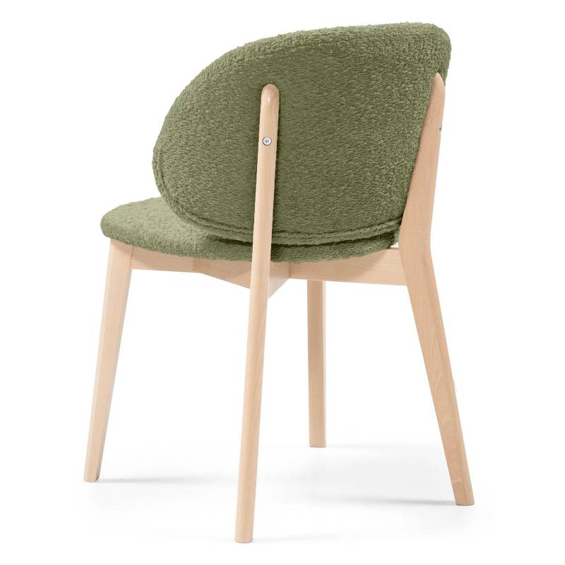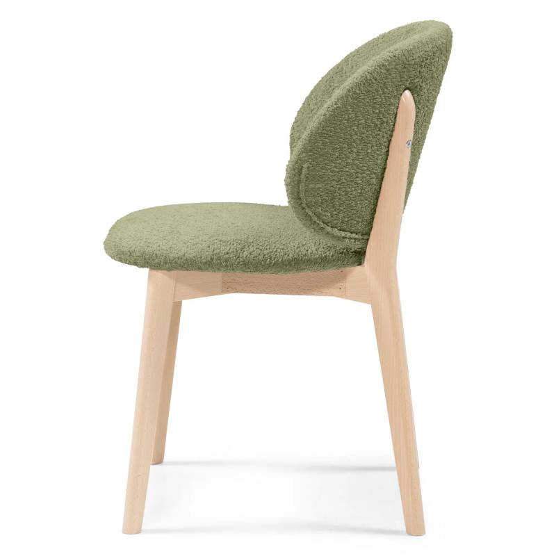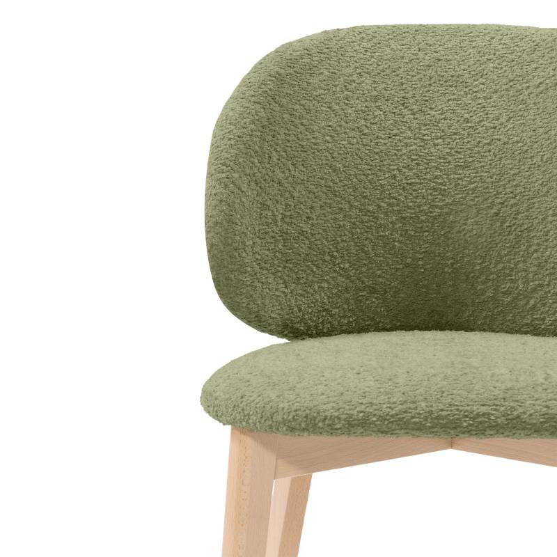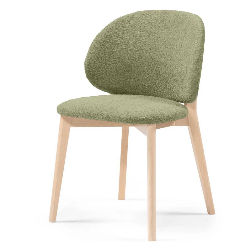 Stilinga valgomojo kėdė su teddy audiniu ir medinėmis kojomis. ACCANTO salonuose galima rinktis audinių ir medžio spalvas.