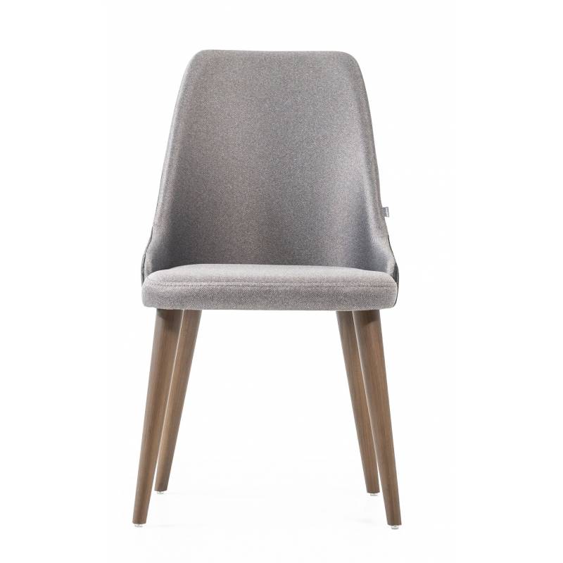 Elegantiška ir patogi valgomojo kėdė, leidžianti rinktis iš skirtingų audinių ir lengvai pritaikoma įvairiems interjerams.