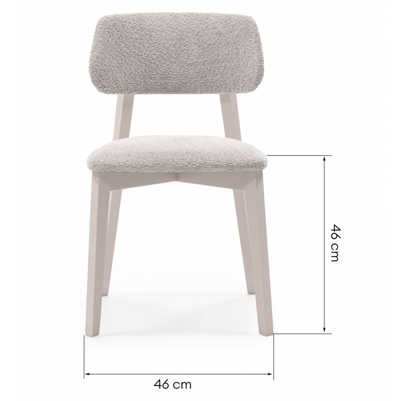 Valgomojo kėdė LAMANGA - sėdimoji dalis aptraukta Teddy audiniu, smėlinės spalvos, o kojos tvirtos, medinės. Ši kėdė gali puikiai tikti ne tik valgomajame, tačiau ir darbo kambaryje ar vaikų kambaryje.