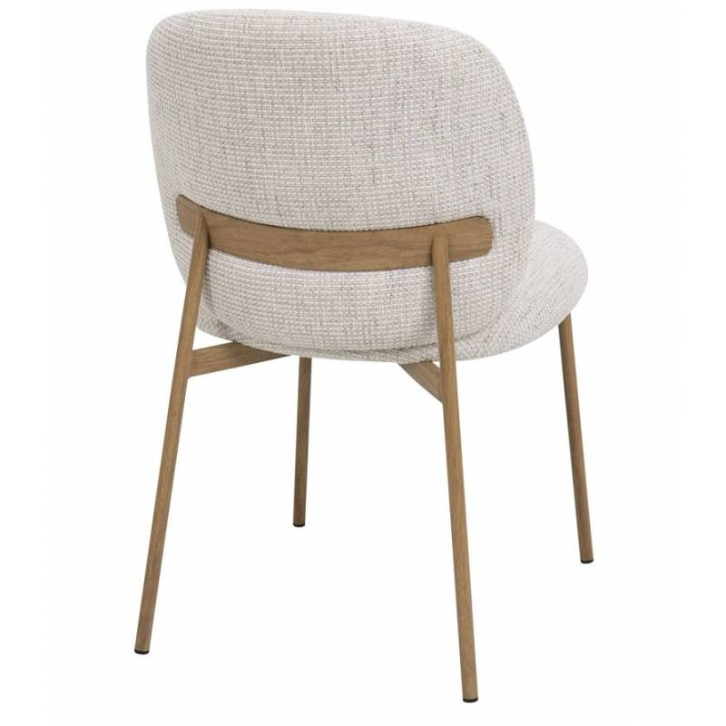 LHOTSE – moderni kėdė, aptraukta storu šenilės audiniu, kuris suteikia jaukumo ir išskirtinės tekstūros pojūtį. Smėlio spalvos sėdimoji dalis derinama su natūralaus medžio kojomis, todėl baldas spinduliuoja šiluma ir natūralumu. Tai puikus pasirinkimas valgomojo, svetainės ar darbo erdvei.