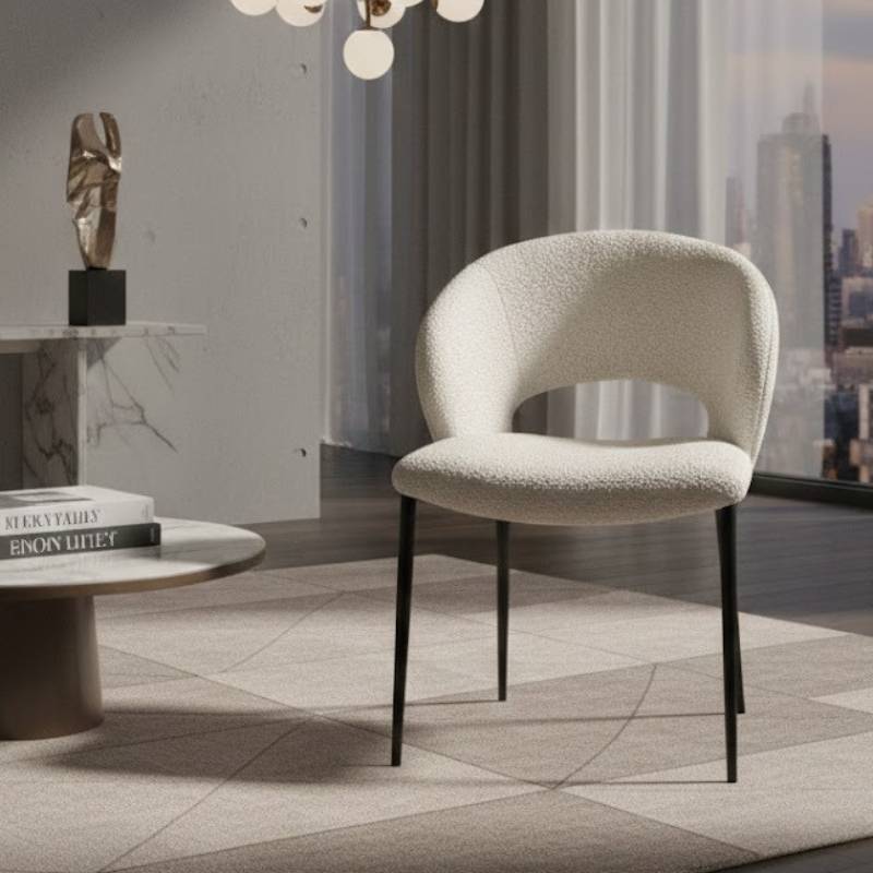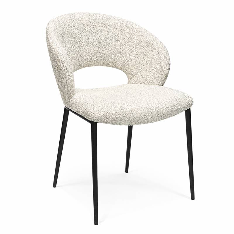LINT kėdė išsiskiria minkštomis, apvaliomis formomis ir plačiu nugaros atlošu, kuris užtikrina patogų ir stabilų sėdėjimą. Bouclé audinys suteikia baldui tekstūros, jaukumo ir vizualinio šilumos pojūtį, todėl kėdė tampa išraiškingu interjero akcentu.