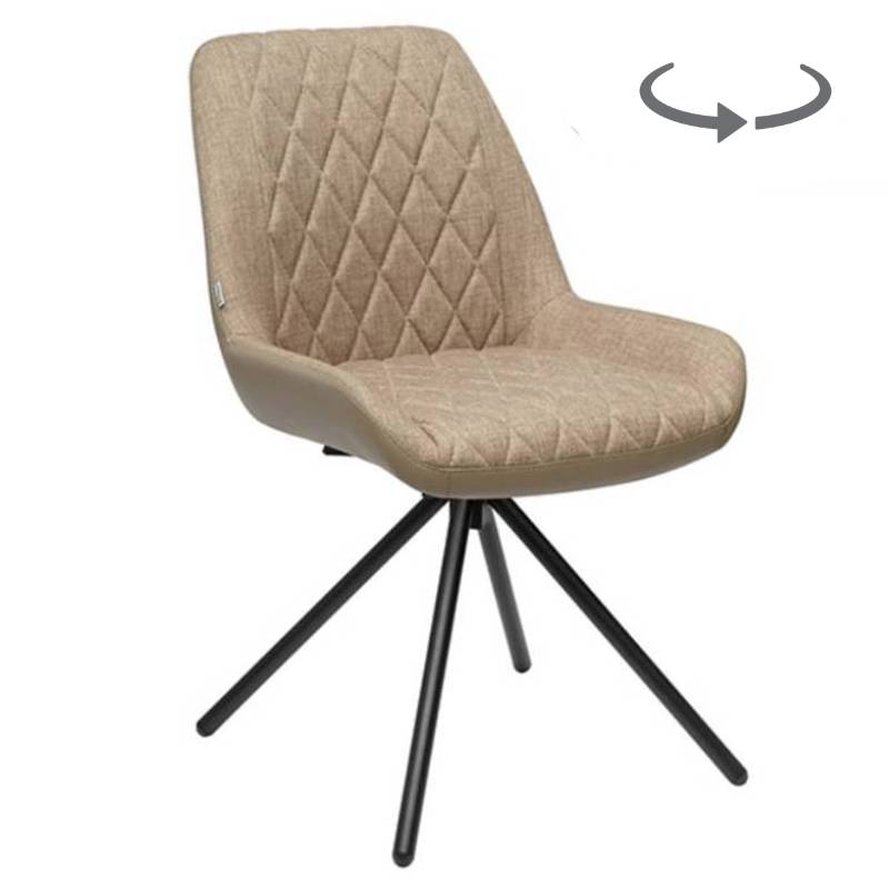 Valgomojo kėdė - NORD. Sėdimoji dalis aptraukta gobeleno audiniu, o kojos dažytos milteliniu būdu juodos spalvos. Puikiai tiks prie bet kokio interjero valgomajame. Accanto baldų salonuose galima rinktis audinį, jo spalvą bei kojų spalvą. Turi sukimosi mechanizmą, suktis gali 180/360 laipsnių kampu.