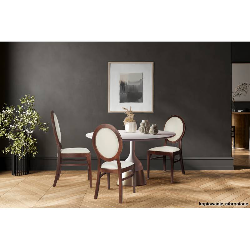 OLEK – retro stiliaus kėdė su minkštu, patogiu sėdimu paviršiumi ir ergonomišku atlošu. Tvirtas karkasas pagamintas iš bukmedžio, kuris užtikrina stabilumą ir ilgaamžiškumą. Aukštos kokybės putų užpildas suteikia komfortą sėdint, o kruopščiai suformuotas atlošas padeda išlaikyti taisyklingą laikyseną.
