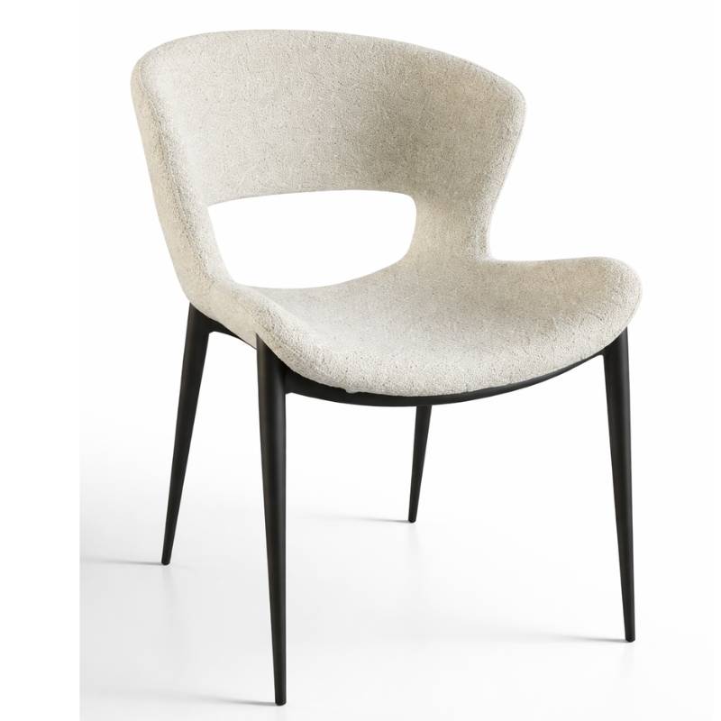 RODA kėdė išsiskiria moderniu dizainu ir minkštomis, patogiomis formomis, kurios užtikrina komfortą sėdint. Rusvos spalvos audinys suteikia šilumos ir jaukumo pojūtį, o juodos kojos subtiliai papildo bendrą vaizdą moderniu kontrastu.